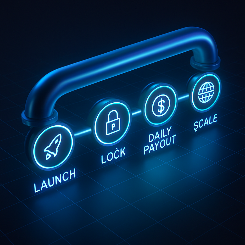 Plug into proven $50-$100K/Day campaigns, and split profits daily via smart contract. You never chase invoices or carry risk again.